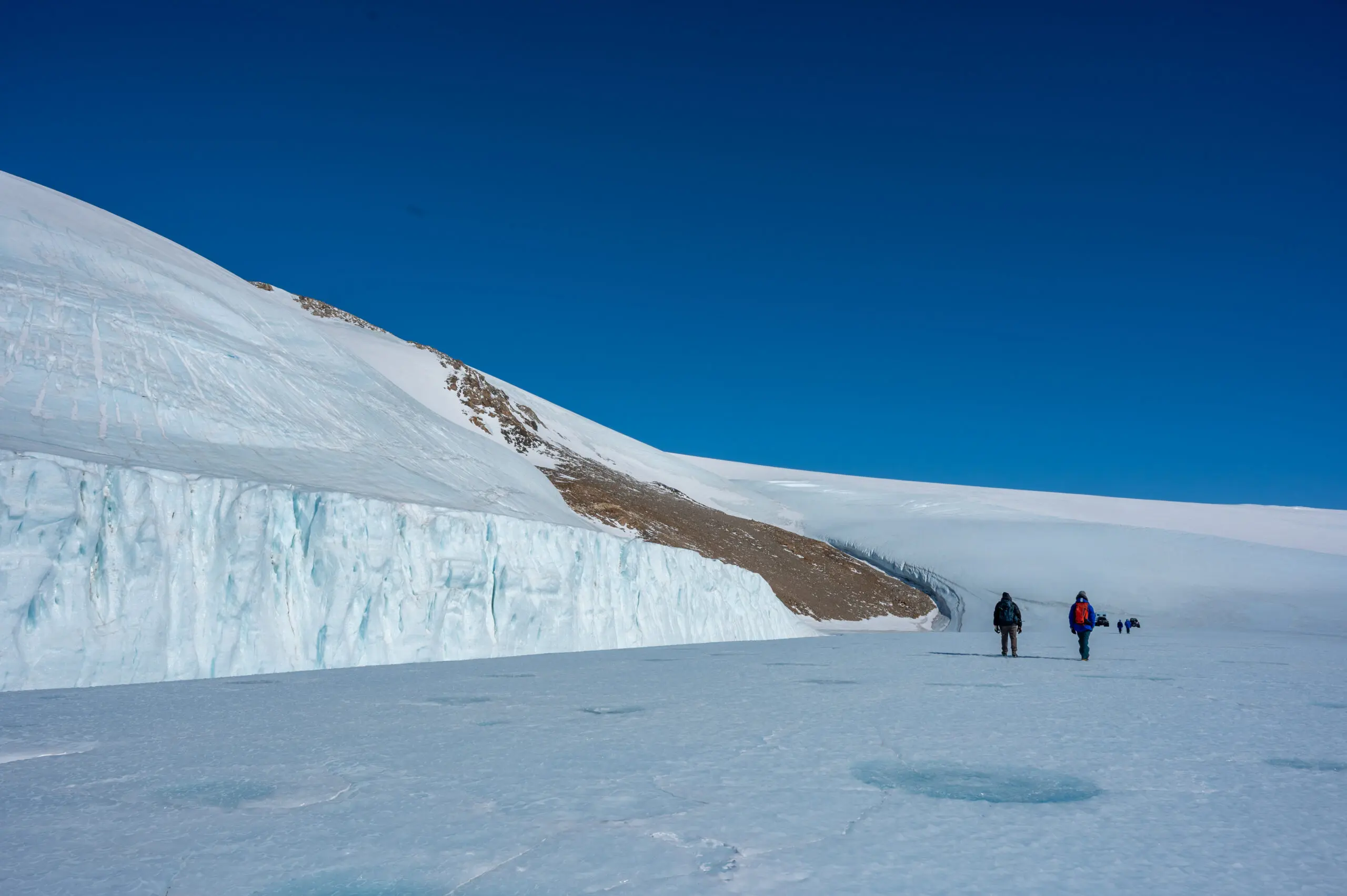 We will board our purpose-built Toyota Hilux and begin your journey into the pristine white wilderness of the Antarctic interior. Travelling across the snow and ice, to reach an astonishing natural artwork: an Antarctic Ice Wall. With the support of our experienced polar guide, we set foot out on to the blue ice, and into this ice cathedral, carved into the ice by long-gone icy waters.